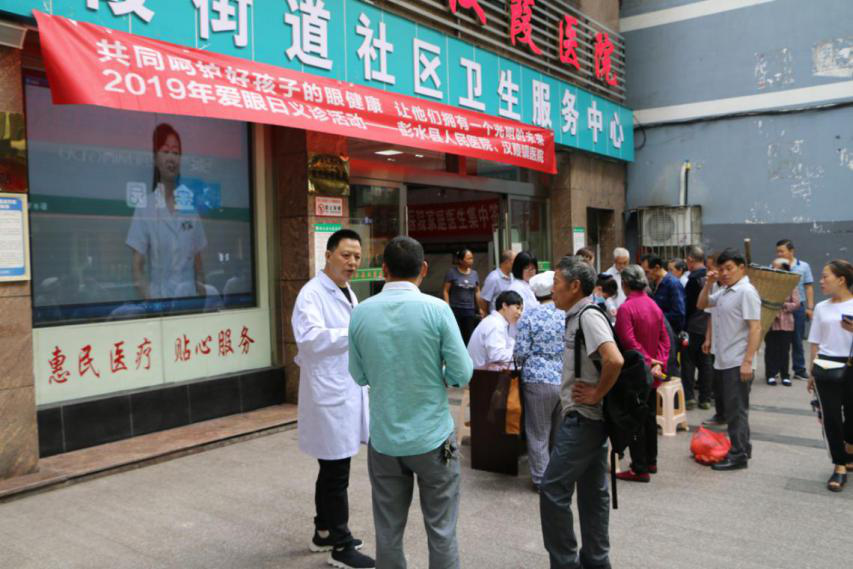 在活动现场,眼科医生们为过往群众测量血压、检测视力、筛查白内障,同时发放宣传资料,宣讲相关健康知识,特别是针对家长朋友,尤其强调要重视孩子的视力问题和眼健康,若发现问题一定要及时就医检查,避免孩子的眼健康出现更大问题。在义诊人流高峰期过后,医生们分出4人,由我院眼科主任豆远松带队前往汉葭镇一小为孩子们进行爱眼护眼知识讲解和视力检测,此次活动得到了校方的大力支持,学校老师听完了医生的知识讲解,表示要进一步加强对孩子眼健康的重视,适当的增加户外活动,缓解眼部疲劳。