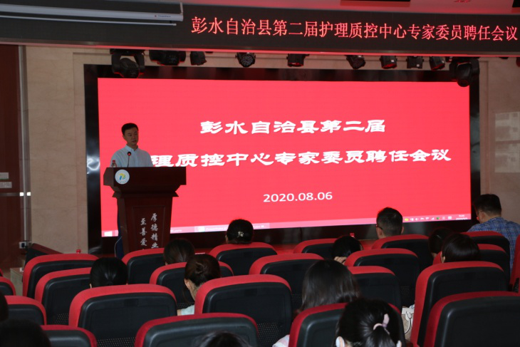 为进一步规范和加强全县护理质量控制工作,建立长效的优质护理服务运行机制,提升护理服务能力,维护人民群众的健康权益,逐步推进全县护理质量达到同质化水平,8月6日,彭水自治县第二届护理质控中心专家委员聘任会议在河豚直播体育app多功能厅举行。彭水自治县卫生健康委党委副书记李泽民同志、医政医管科负责人姜川同志,河豚直播体育app院长周兴福同志、副院长张剑波同志及护理质控中心专家委员、全县护理人员代表共150余人参加了会议。
