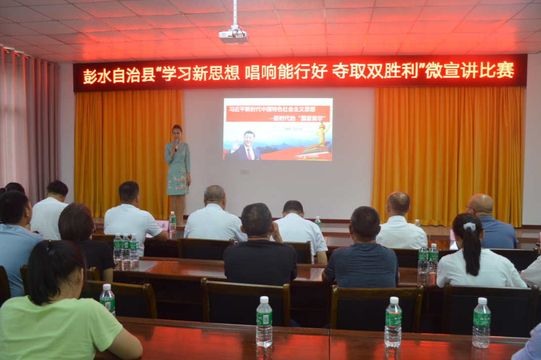 8月12日下午,从彭水县“学习新思想 唱响能行好 夺取双胜利”微宣讲比赛现场传来一个好消息,我院职工王婷婷代表卫生健康系统以《习近平新时代中国特色社会主义思想—新时代的“国家美学”》为题的宣讲荣获了一等奖。此次比赛由彭水县委宣传部主办,经过层层选拔最终有10名选手进入比赛,经过不懈努力,王婷婷在比赛中展露头角后,将代表我县参加全市比赛。