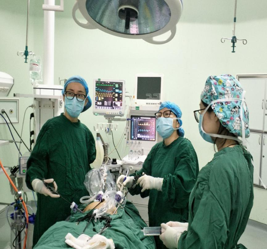 3、开展新技术及新的手术方式:重点开展腔镜手术,包括宫腔镜、腹腔镜手术及恶性肿瘤的根治术。目前开展了腹腔镜大子宫切除术、腹腔镜重度粘连分解术、宫颈癌根治术、子宫内膜癌分期手术、经阴道子宫切除、阴道壁裂伤修补术及会阴陈旧性裂伤修补术、单孔腹腔镜下附件切除术等新技术。尤其是经阴子宫切除和单孔腹腔镜技术填补了渝东南地区的空白。这些技术给很多病人带来了福音,病人术后恢复顺利,均取得良好效果。
