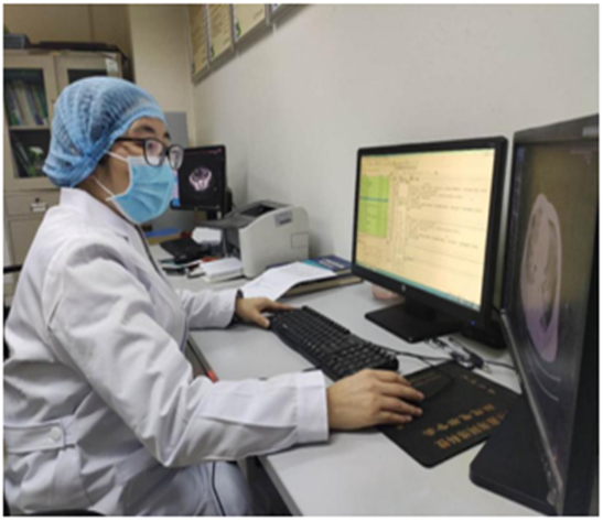 在彭水支医半年(2019年9月——2020年3月),吴媛医生积极投入到所在科室放射科的日常工作中。参与报告审核、疑难病例讨论会诊、带教示教及培训讲座等科室临床工作,提高了科室医生全身CT、MRI诊断,尤其是脊柱关节MRI、急腹症CT诊断等方面的技能知识。支援期间,审核疑难病例报告,开展疑难病例讨论,对知识点及问题进行讨论交流,并进行相关知识业务培训,一对一带教示教,巩固放射科团队人员培养。支援期间,协助科室开展新技术项目,参与科室的质控工作;优化科内增强检查患者检查流程,降低医疗风险,提高医疗质量;优化科内危急值报告流程及规范,缩短报告时间;协助危重病人抢救,并进行讨论分析总结,加强对比剂过敏反应知识培训及考核,加强急救技能训练、急救知识培训考核,加强危重病人急救演练,优化演练脚本,提高放射科抢救能力。