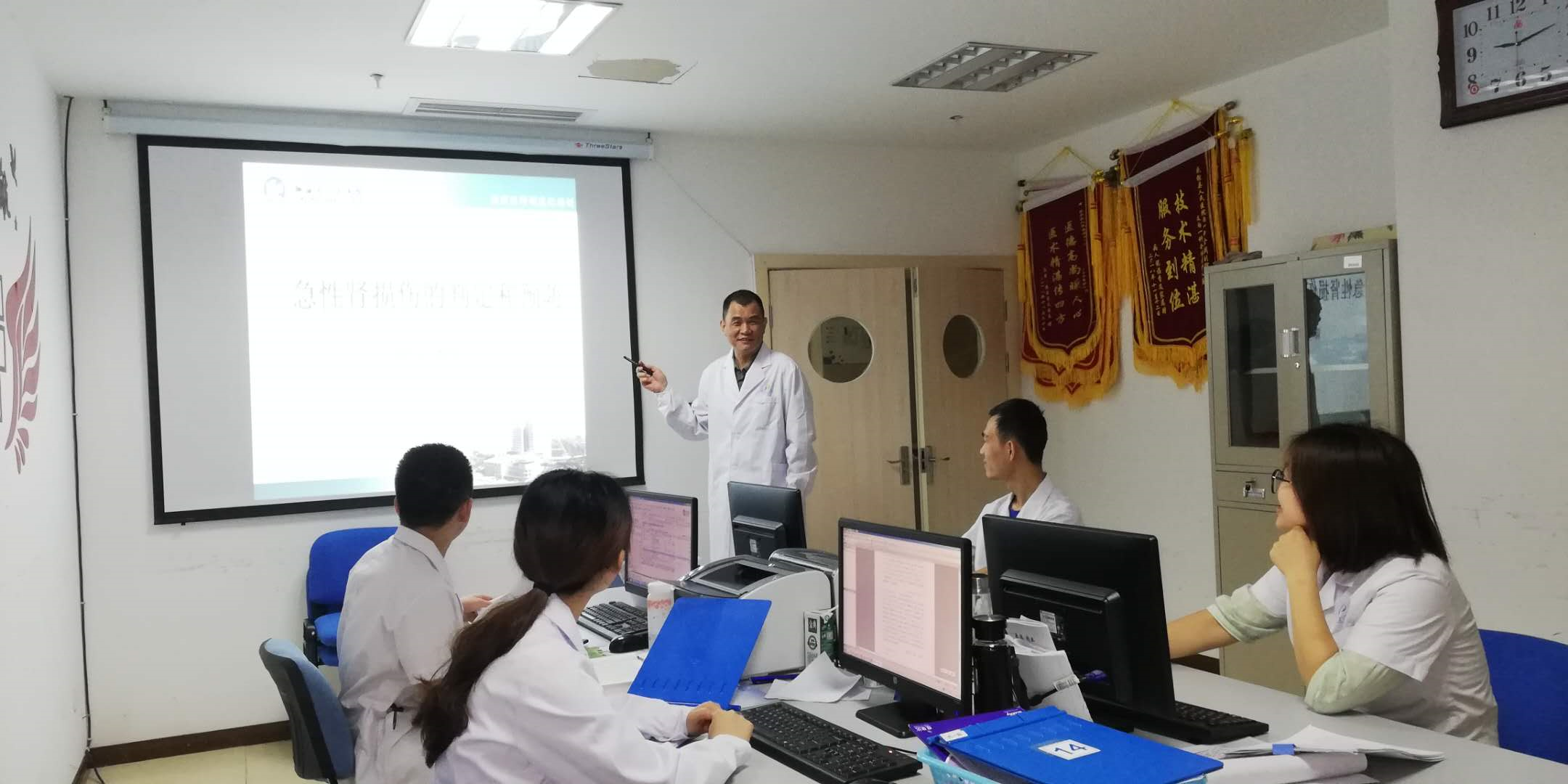 李捷在肾内科工作,日常从事门诊,病房查房,疑难病例讨论和一些风险有创操作的指导。并和内一科科室负责人王业磊探讨肾内科的建设和发展(肾科专业化验检测技术的开展,肾科医生的人才培养),此时正面临血透室的改造,和张玖文副院长,王业磊一同分析目前血透室的弊端和欠缺,讨论改造设想,改造目标并规划设计。期间李捷主任的父亲突然因脑中风住院,作为在渝工作的儿子无法亲自照顾,感觉十分愧疚,男儿有泪不轻弹,只有在安静的角落才能看到他眼角的泪花。