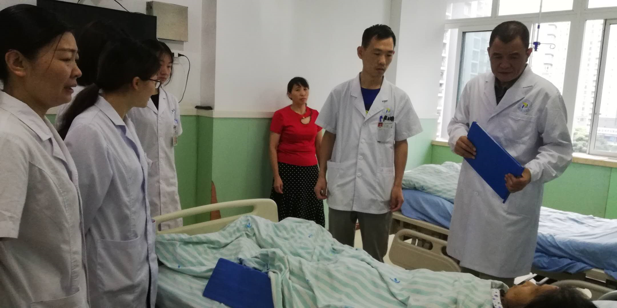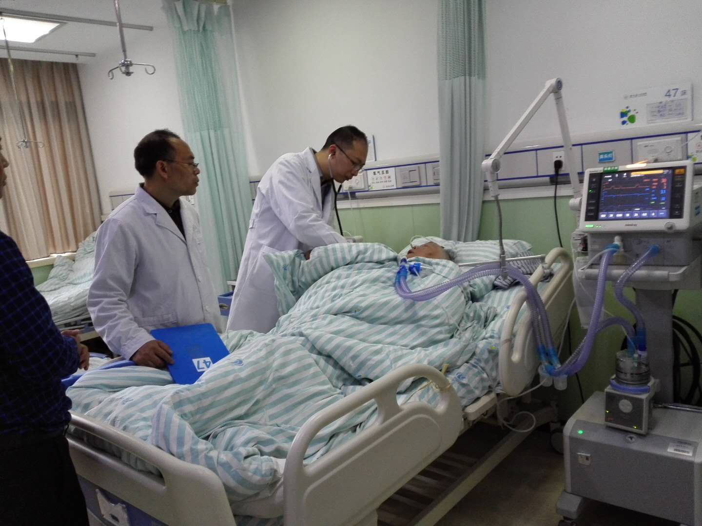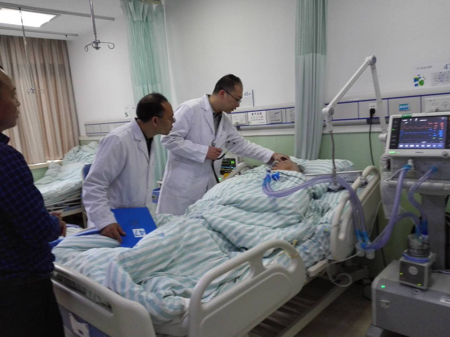 图为张雪松副主任医师为一位年过9荀的多器官功能衰竭患者查房,经过细心调整药物后,该患者转危为安,成功出院。