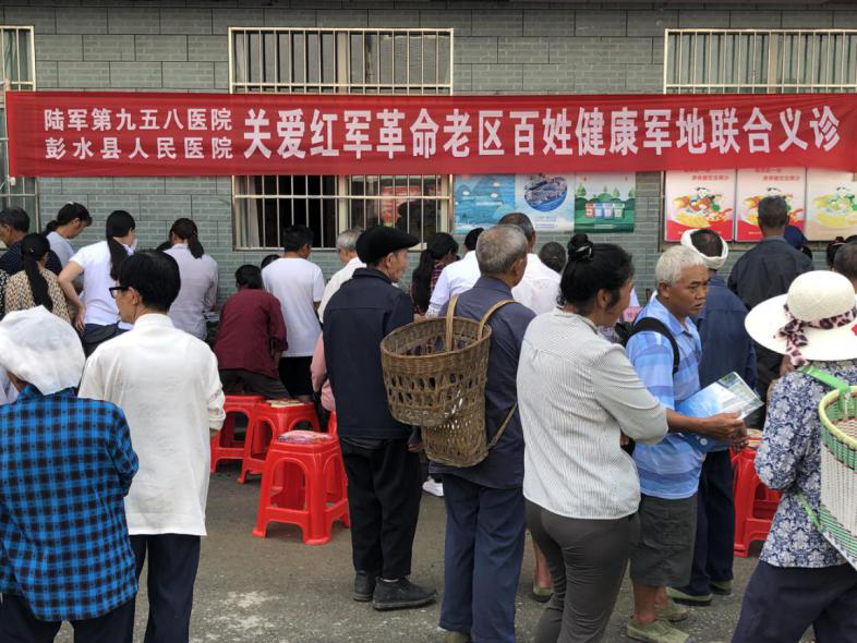 2019年7月25日在建军节来临之际,陆军第958医院和河豚直播体育app联合举办的“联合军地医院特色医疗、关爱红军基地百姓健康”主题大型义诊活动在彭水县黄家镇举行。上午8时,陆军第958医院15名医护人员、我院4名医务人员和2名“予善”志愿者集中前往彭水县黄家镇。