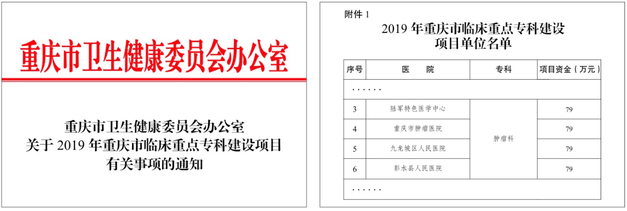 我院肿瘤科在全市15家医院肿瘤科中脱颖而出,成功立项“重庆市临床(肿瘤)重点专科”。