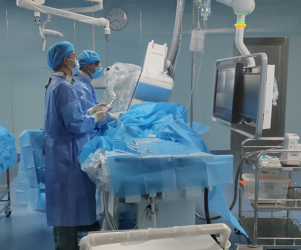 心内科陈元友主任医师和王欣主治医师在认真评估患者的基本情况、病变情况后,认为患者年轻、病变适合植入可吸收支架。王欣医师与患者及家属沟通介绍过生物可吸收支架的特性,通过对支架的进一步了解,患者及家属十分期待并决定尝试这种新型可吸收支架。