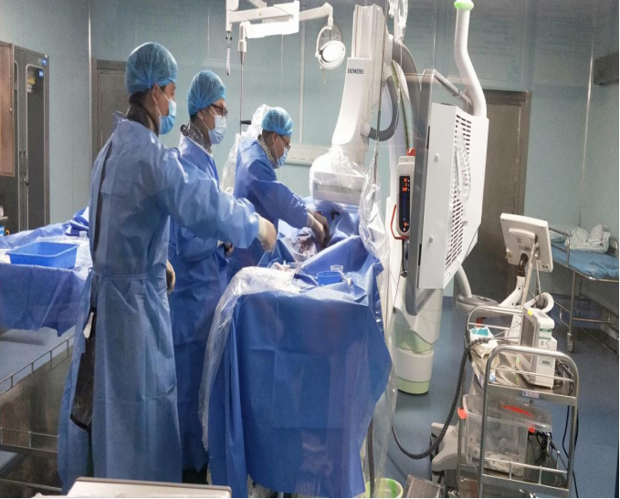 抵达医院,安顿好生活起居,张医生便来到外五科,先后和科主任王启伦、护士长李蓉了解血管外科的基本情况:①外五科系成立不足2年,有肝胆血管医生6名,其中硕士1名,实际开放床位30张;②科室以静脉曲张高位剥脱、下肢泡沫硬化剂注射、血管造影、下腔静脉滤器植入、深静脉置管溶栓等作为常规手术;③择期手术如肿瘤、动脉介入等手术处于起步阶段,肺动脉造影吸栓术、主动脉夹层腔内隔绝术等目前处于空白。