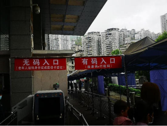 原注册或现场注册渝快码或渝康码的人员手持渝快码、渝康码、身份证、医保卡任意一种介质,依次进入上图所示的有码入口。