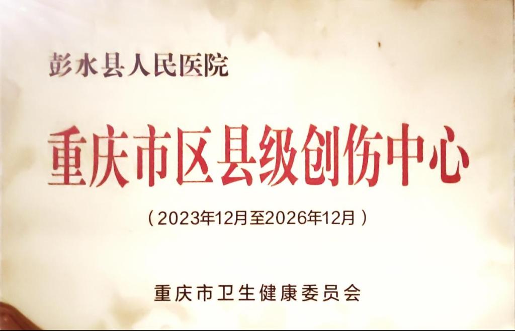 12月16日,由重庆市卫生健康委员会主办的“重庆市创伤医学医疗质量控制中心2023年度工作会议”正式召开,会上,市卫健委为全市20家创伤中心进行了授牌,我院作为彭水自治县唯一一家创伤中心顺利通过认证并获授牌。