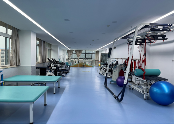 科室配备先进的现代康复仪器设备:射灸舱治疗仪、心肺功能测试系统、多波段光谱治疗仪、新型言语障碍评估及康复训练系统、吞咽障碍治疗仪、空气压力波治疗仪、电动站立斜床、经颅磁治疗仪、智能康复治疗仪、悬吊康复训练系统、平衡测试系统、全智能系统蜡疗机、体外冲击波治疗仪、射频治疗仪、臭氧治疗仪、肌骨超声机、神经肌肉电刺激治疗仪、盆底生物反馈治疗仪、脉冲超短波电疗机、自动脉冲冷敷系统、磁振热、四肢联动等。
